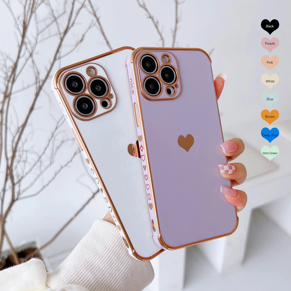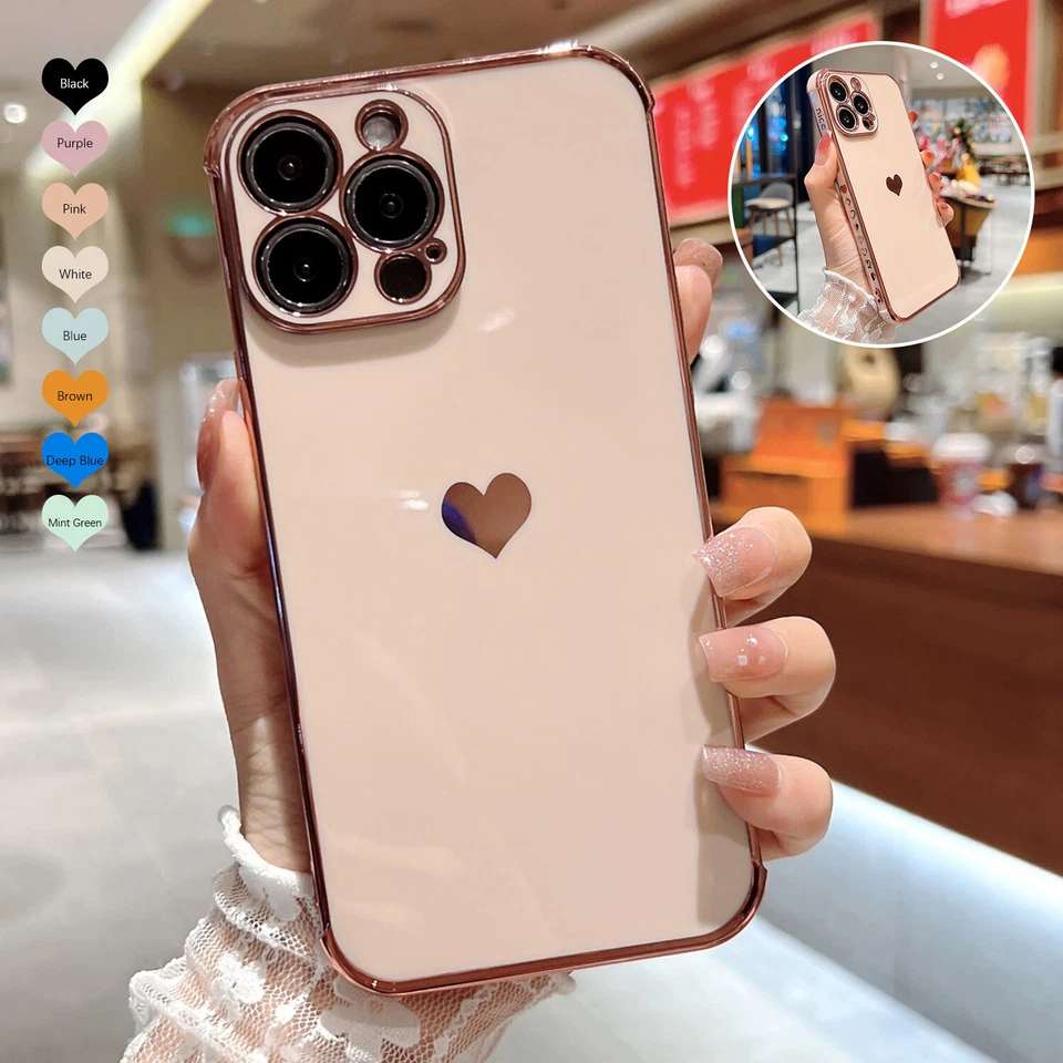 15 reviews for Large Pallets (120+ units) HOT For iPhone 16 15 Pro 14 13 Pro Max Case Girls Love Heart Plating Slim Cover