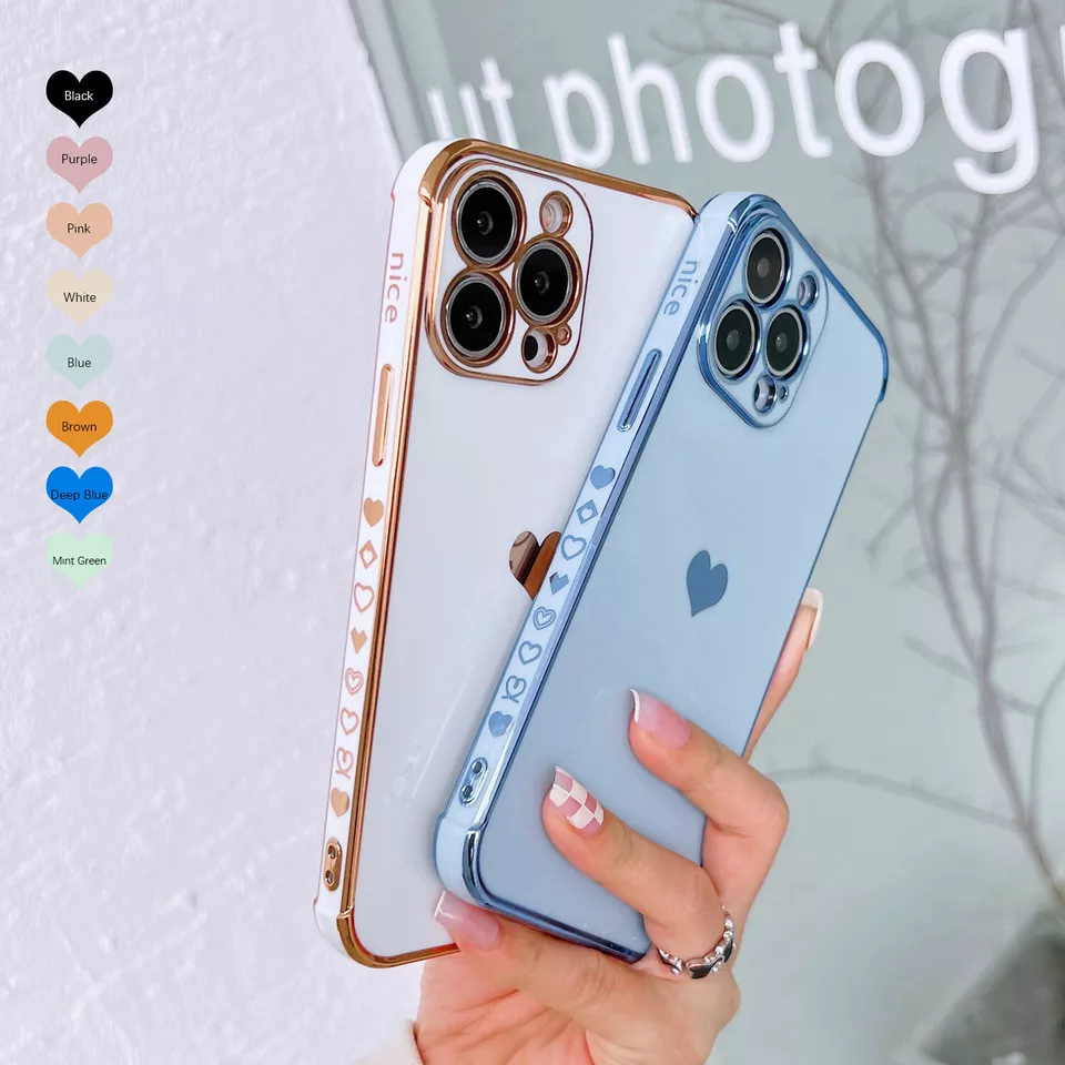 Large Pallets (120+ units) HOT For iPhone 16 15 Pro 14 13 Pro Max Case Girls Love Heart Plating Slim Cover
